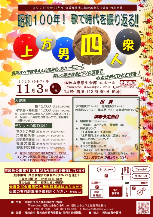 - 特別事業「上方男四人衆~昭和100年❗️歌で時代を振り返る‼️~」コンサートを開催します