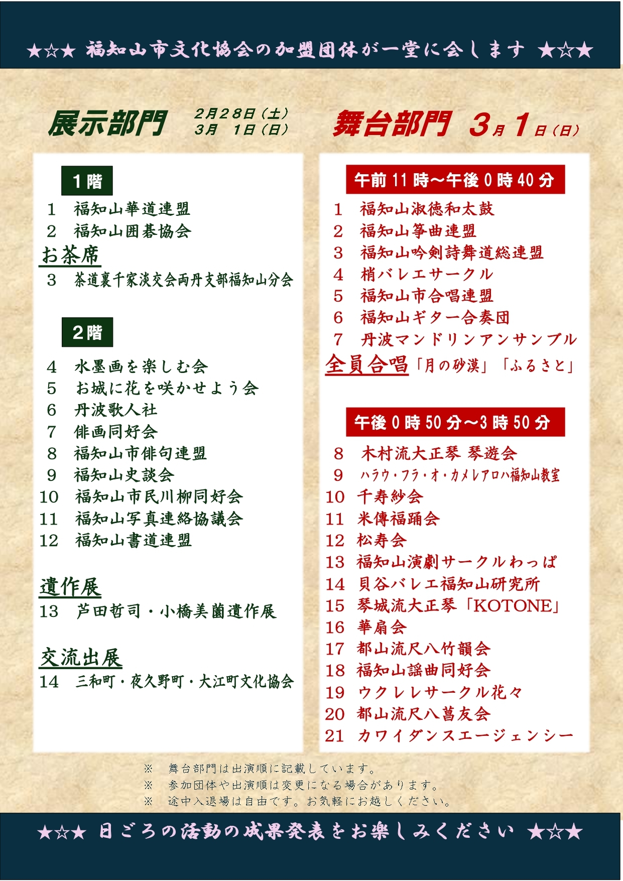 平素より、公益社団法人福知山市文化協会の活動に御理解・御協力を賜り、誠にありがとうございます。